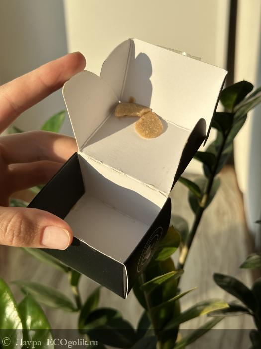 Коробочка сделана точно под шампунь, ни одного лишнего сантиметра по бокам, все идеально ровно. На моей фотке уже остатки шампуня, я им пользовалась почти полгода, может больше. В самом начале не приятно намыливать руки из-за твердых граней, но со временем смыливается и обтачивается.