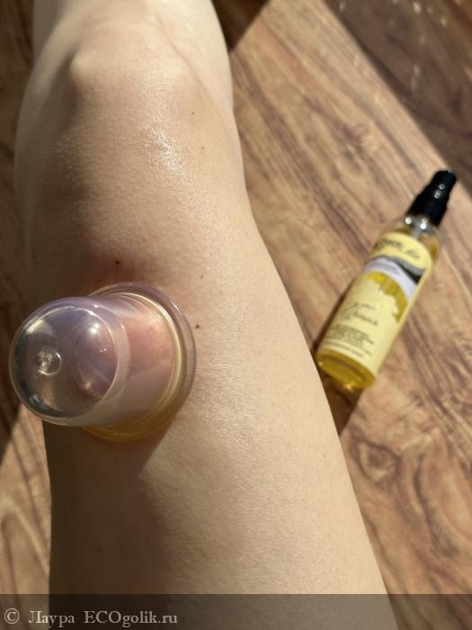 С аппаратом - пока что прошла только 3 - 4 процедуры, на теле еще есть синяки, хотя скорость ставлю 1 (самую низкую). Но все равно мощность выше, чем у банки поэтому синяки есть. Масло прекрасно подходит и для аппарата. Правда с ним расход масла вырос, я периодически добавляю и пока не выявила свою порцию.