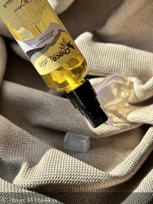 У меня было масло в такой бутылочке, по-моему, «Упоение» или что-то в этом духе. Очень нам понравилось делать с ним массаж. Ненавязчивый, но приятный аромат, неплохо скользит и не пачкает ничего вокруг. По свойством с твоей бутылочкой очень схож.