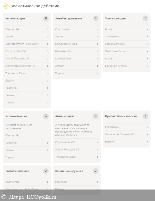 Позволяет бережно удалить загрязнения, не повреждая при этом структуру волос, не сушит волосы и кожу головы.