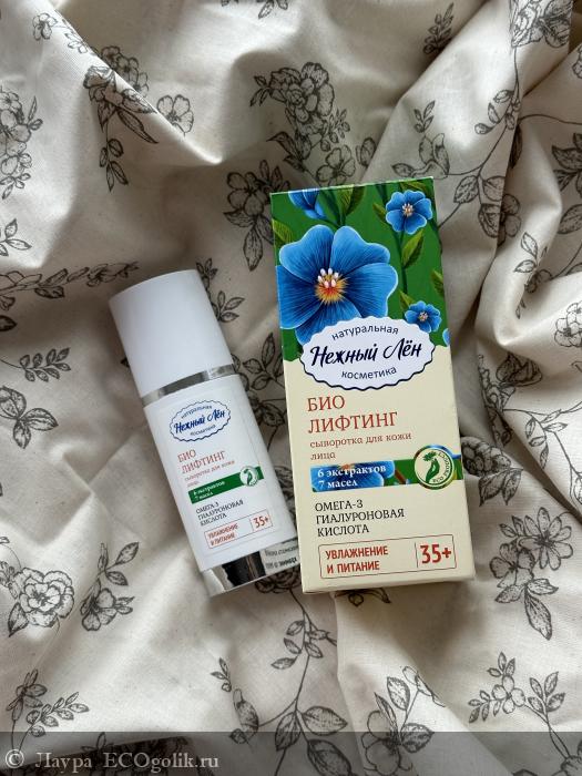 У бренда Нежный Лен не так много сывороток, выбирала чисто по цифре, мне все таки ближе 35+, чем 45+. Встречайте героя сегодняшнего отзыва: Сыворотка для лица Био - лифтинг 35+ от бренда Нежный Лён.