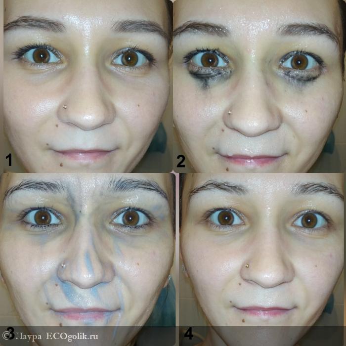 Можно конечно сказать что натуральная косметика смывается даже от плевка, но это не совсем так. На фото видно как тушь остается и тени держаться.