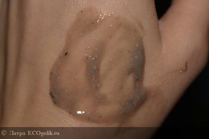 По консистенции это как легкий йогурт не однородной массы, немного со сгустками. Это именно легкий флюид без намека на маслянистость. Иногда ощущаются какие то добавки, которые не травмируют кожу. Они без острых краев и дают легкий эффект полировки.