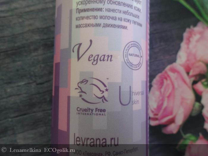 Помимо этого молочко имеет международный сертификат «Cruelty Free International Leaping Bunny» подтверждающий, что косметика не тестируется на животных и не содержит каких-либо животных ингредиентов и их производных. Компания Levrana — первый обладатель данного сертификата в России.