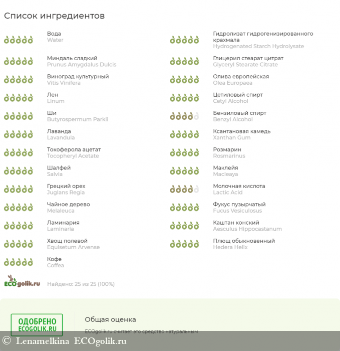 Качество всех ингредиентов подтверждается европейским сертификатом COSMOS NATURAL.