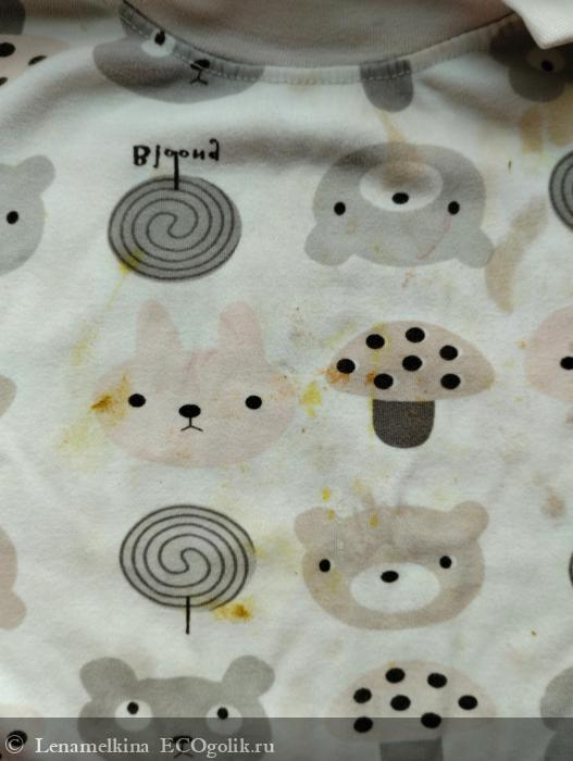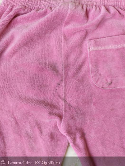 К примеру, на штанишках были черные пятна от активной игры на детской площадке с резиновым покрытием после дождя. С ними гель справился, отстирал все чисто.