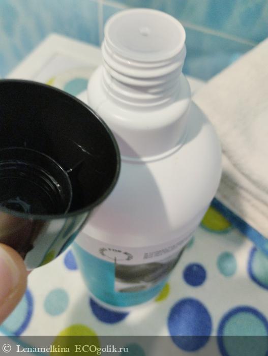 Обычно в гелях для стирки мерным стаканчиком является колпачок на флаконе. И производитель об этом пишет на этикетке, с указанием вместимости колпачка. Особо заботливые производители даже делают мерную шкалу внутри колпачка
