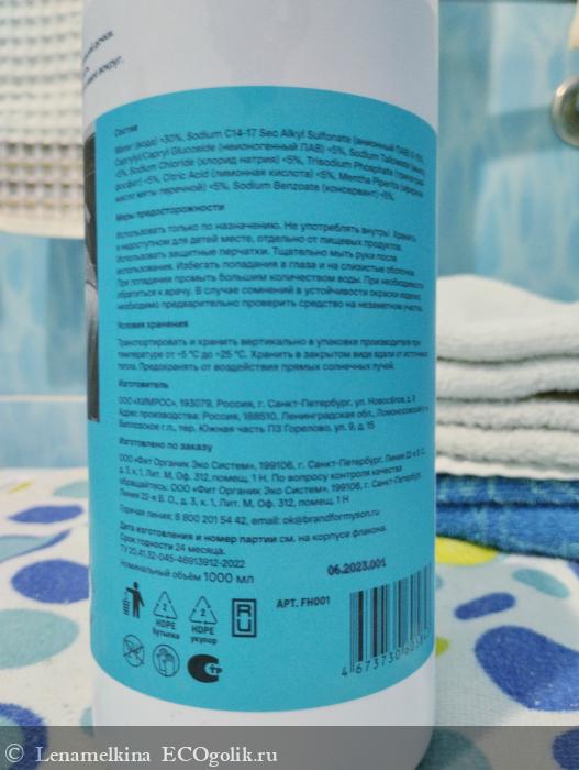 Состав (INCI): Water, Sodium C14-17 Sec Alkyl Sulfonate, Caprylyl/Capryl Glucoside <5%, Sodium Tallowate <5%, Sodium Chloride, Trisodium Phosphate, Citric Acid, Mentha Piperita, Sodium Benzoate <5%