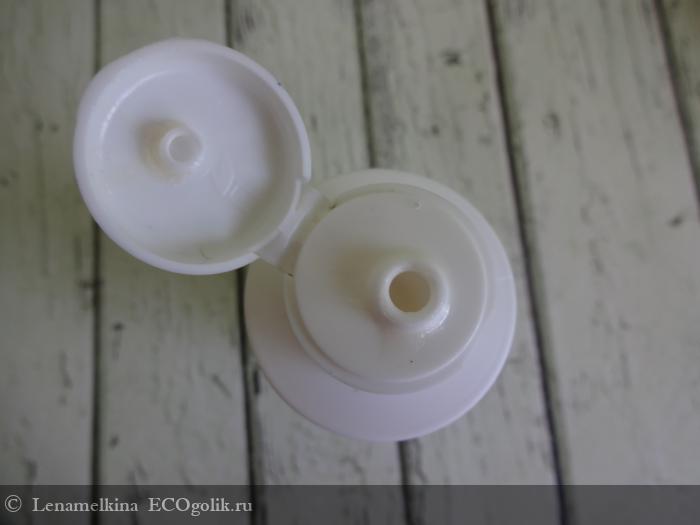 Под откидной крышкой дозатор-ограничитель. Гель хоть и густой, но выдавливается отлично и в дозаторе не засыхает.