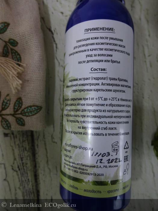 Всем привет! Я очень люблю всякие разные гидролаты. Благодаря приглашению на тестирование от бренда Miraflores, я познакомилась и с их гидролатами. Первым был гидролат бессмертника, о котором я рассказала здесь. Следующий, который я использовала - это гидролат крапивы