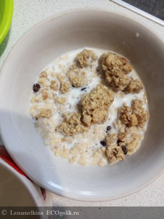 Мы кушали гранолу в качестве дополнения к завтраку. Яичница + гранола + бутерброд с напитком = отличная сытная трапеза взрослому