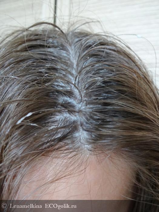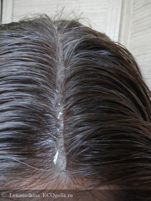 После нанесения на кожу головы пилинг нужно помассировать. На удивление оказалось, что он слегка пенится! Это происходит из-за коко-глюкозида в составе. Пены совсем немного. Но такое лёгкое пенообразование позволяет распределить пилинг более равномерно по всей поверхности головы, тщательно прорабатывая участки между проборами. Плюс происходит очищение поверхности, так как здесь включается в работу ПАВ.