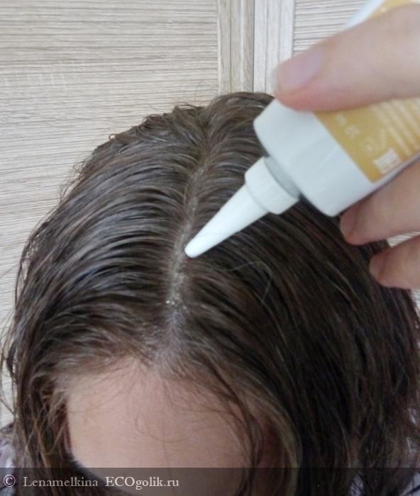 Я, как и указано в инструкции, сначала смачивала кожу головы водой. Затем по проборам наносила пилинг. С помощью насадки-носика это оказалось очень удобно делать. Я уже знакома с этим носиком, когда у меня была сыворотка. Тогда он мне крайне не понравился, потому что кремообразная сыворотка засыхала внутри и забивала этот носик. Я писала об этом здесь. В случае с гелевой консистенцией пилинга такой неприятности не происходит. Гель легко выдавливается из носика и его легко можно оттуда вымыть водой, чтобы ничего не засыхало.