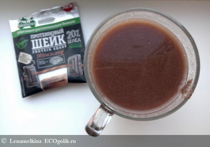 Замешивать лучше в шейкере, но у меня нет такого приспособления. Обычной чайной ложкой мешать нужно очень тщательно, чтобы не осталось комочков. Напиток получается густым, на стенках стакана видна осевшая "гуща". Но пьется легко, в меру сладкий, с шоколадным вкусом. Мне понравилось.