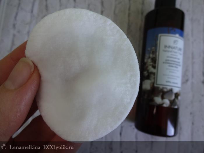 Поскольку у тоника обычный дозатор-ограничитель, то самый подходящий вариант нанесения - с помощью ватного диска. Я такой вариант не люблю. Во-первых, получается слишком большой расход жидкого средства. Надо вылить достаточно много тоника, чтобы ватный диск хорошо пропитался и что-то попало на лицо. Во-вторых, ватные диски - ежедневный дополнительный мусор.