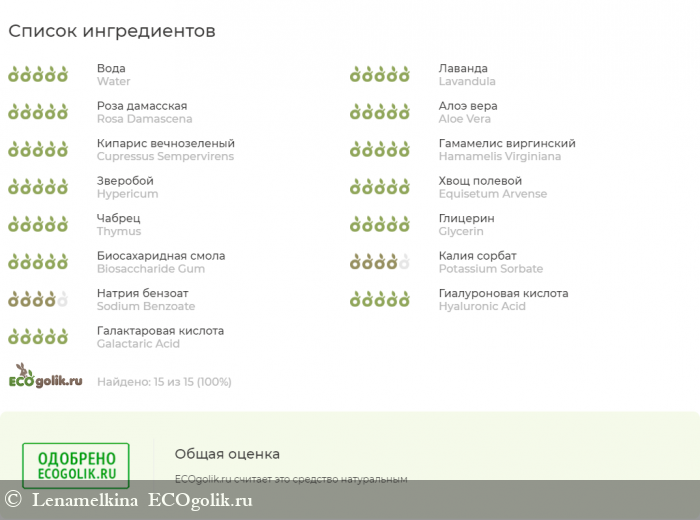 Для начала пропустим через анализатор. Всего 15 ингредиентов, и все одобрены!