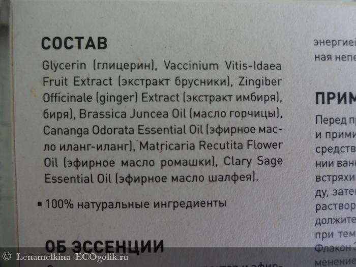 Несмотря на дороговизну продукта и высокое содержание глицерина при наличии всего лишь одного базового масла в составе, я ставлю двухфазной эссенции для ванн №3 пятёрку, потому что мне действительно принесло удовольствие пользоваться ею. В сущности, даже и в глицерине нет ничего страшного, ведь он растительного происхождения и великолепно смягчает кожу. Судя по насыщенности аромата, в составе достаточно большая концентрация эфирных масел, поэтому результат от ароматерапии несомненно тоже есть.