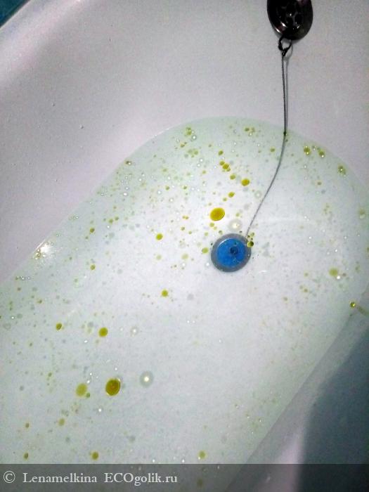 Кожа моментально смягчается. Как и поверхность воды, тело тоже покрывается тонкой маслянистой плёночкой. Думаю, что всё же это в большей степени плёнка от глицерина, нежели от растительных масел. Но, тем не менее, ощущения приятные. После ванны тело становится невероятно бархатистым, увлажненным, эластичным, даже никакого крема не надо. Маслянистость не жирная, а именно приятно-бархатистая. Нет необходимости смывать этот всё под душем, достаточно промокнуть тело полотенцем и всё. Ни на полотенце, ни на одежде потом я не заметила никаких следов.