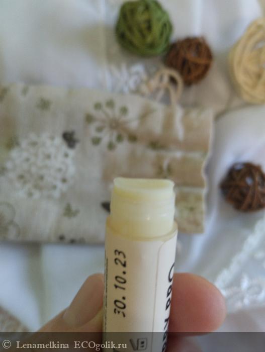 Бальзамчик приятного сливочного цвета. Стик хорошо держит форму. При комнатной температуре не подтекает. Срез ровный, не скошенный.