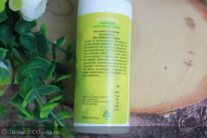 Небольшое описание с сайта производителя "Крем-дезодорант создан из органических экстрактов и органических эфирных масел. Быстро впитывается. Не угнетает дружественную микрофлору. Не препятствует физиологичной работе потовых желез".