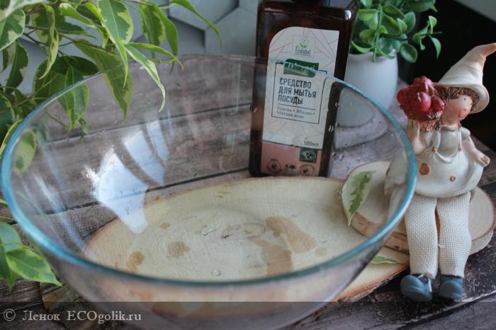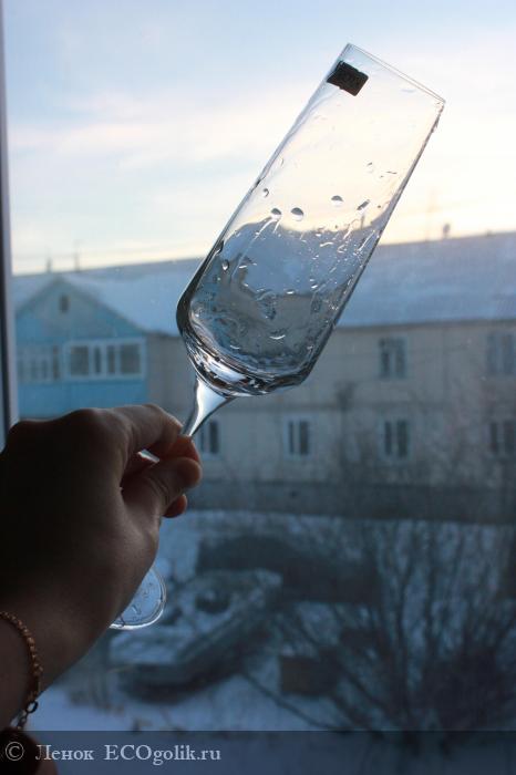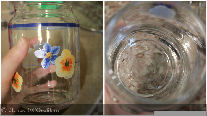 Средство отлично справляется со стеклянной посудой, она блестит своей чистотой.