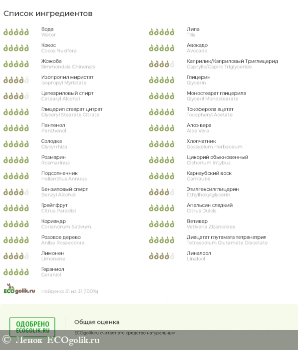 Подробности о каждом ингредиенте можно посмотреть по ссылке тут