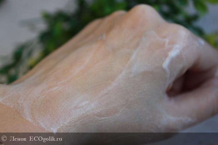 Крем не полосит (это я просто переборщила), распределяется по рукам легко и практически мгновенно впитывается, не оставляя на руках ощущения пленки или липкости.