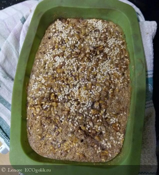 У меня старушка силиконовая форма с тонкими стенками, уже повидавшая жизнь, но любимая и я никак её не заменю, она меня устраивает во всём, но вот под тяжестью теста из гречки стенки расходятся и хлеб получается более плоским, чем задумывалось, но это его не портит, просто больше корочка по площади, а она такая вкусная с семечками то, ещё б )