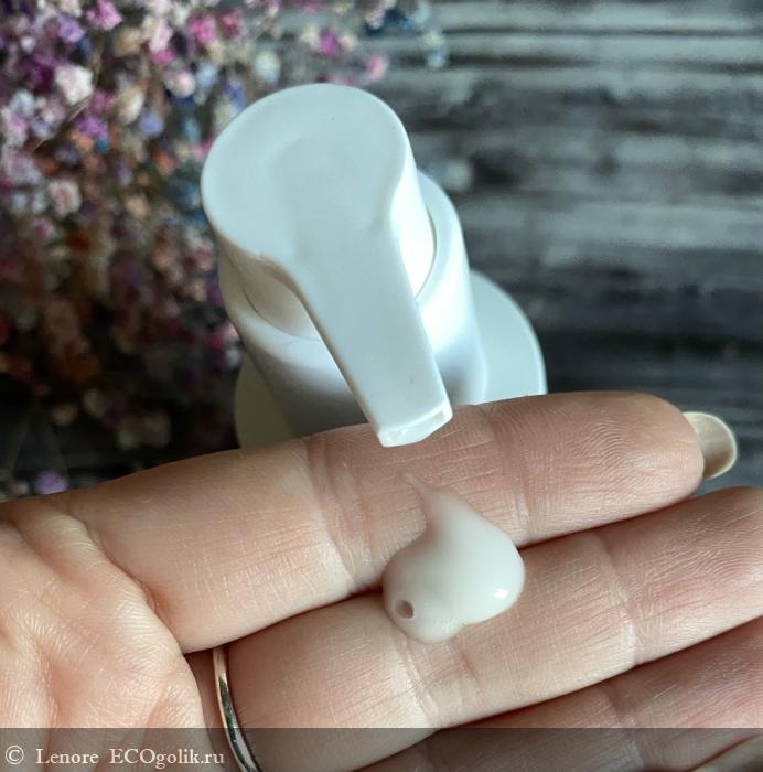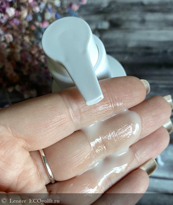 Текстура у флюида легкая, не жидкая и не масляная. Цвет молочно-белый. Кислотный аромат.