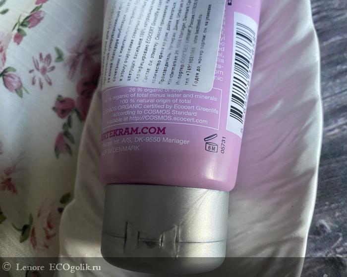 Обычно клеят так, что виден был состав, в этот раз промахнулись и заклеили его, но это не страшно, можно отклеить или посмотреть состав на сайте или просто не париться, потому что крем имеет сертификат COSMOS ORGANIC. Я выбрала последний вариант, разбора состава не будет, напишу лишь, что основа крема из масел ши, жожоба и миндального.