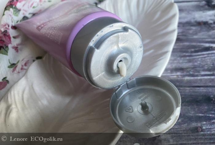 Находится крем в тубе из пластика сиреневого цвета, как и на всех продуктах данного бренда, тут нет русских слов, для этого имеется специальная этикетка, наклеенная сзади для российского рынка.