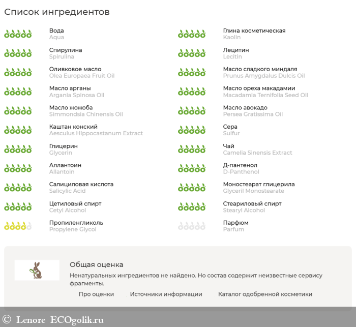 - Kaolin (каолин, белая глина) — мягко абсорбирует излишки себума, очищает поры, не пересушивая кожу.
