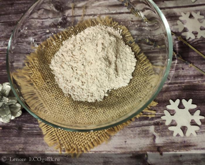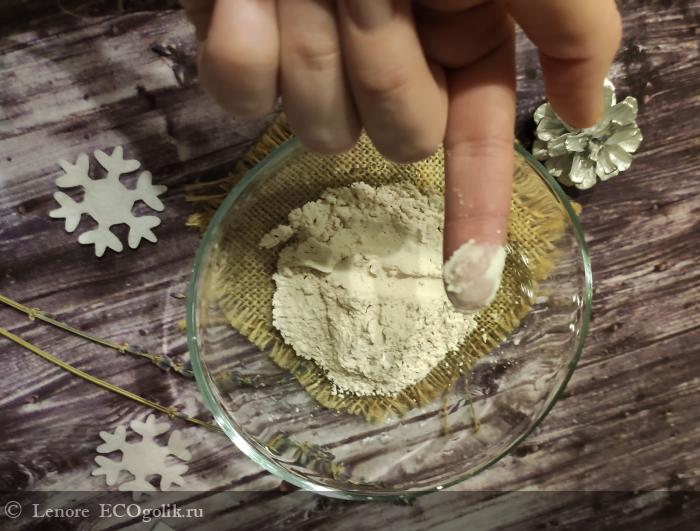 Сам порошок белого цвета и очень мелкого помола с небольшим вкраплениями цветов, по картинке на упаковка я сначала подумала, что это лаванда, но это не так, лаванда в маске присутствует в виде экстракта, а цветочки это календула, она не менее полезна для нашей кожи.