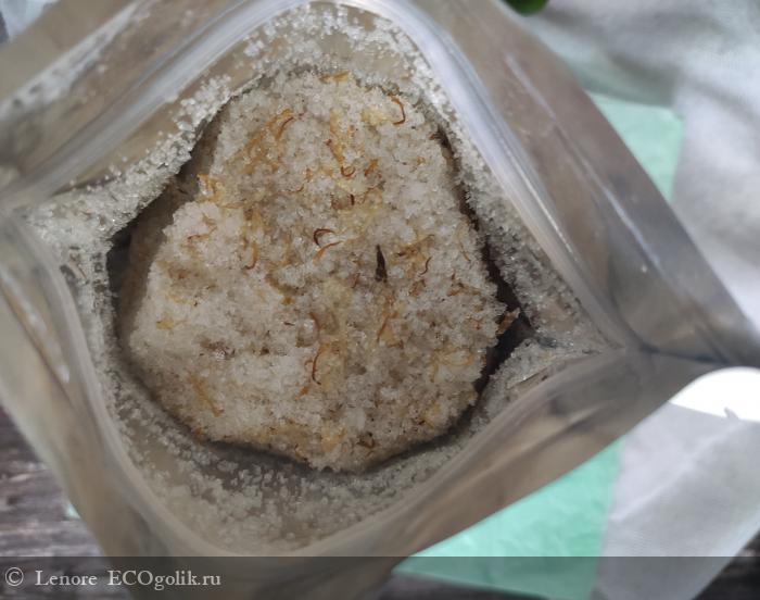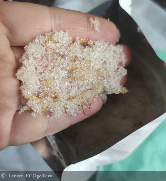 Их открытого пакета сразу пахнет очень насыщенно терпким цитрусом, как будто грейпфрутом, даже его цедрой больше, при добавлении в теплую ванну аромат ещё ярче раскрывается, он никуда не пропадает все время принятия ванны, но к нему привыкаешь и уже ощущается менее концентрированно, но даже после окончания всех процедур, если снова вернуться в ванну, то можно снова ощутить шикарный аромат. Правда сколько я не пыталась уловить леденцовую сладость летсеи, у меня не получилось.