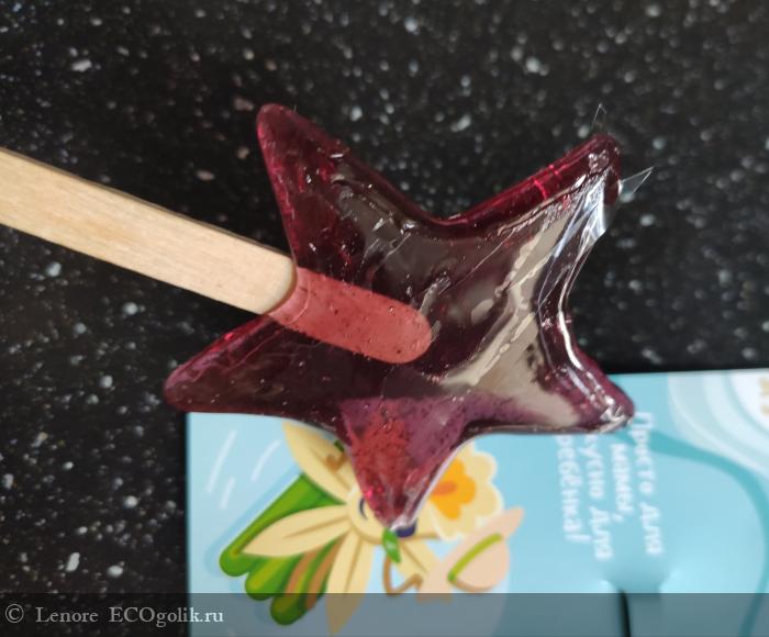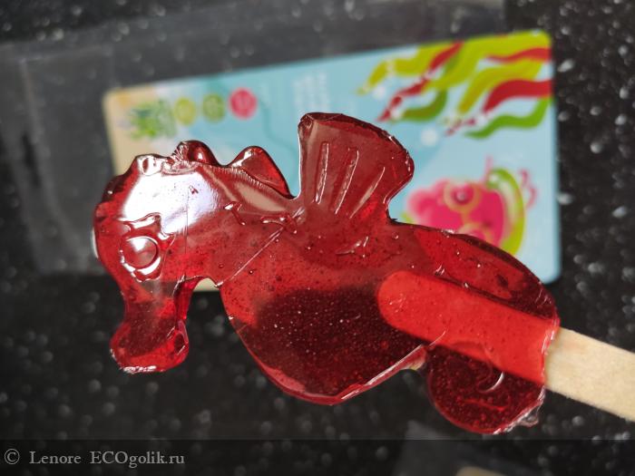 Малиновый леденец у нас был в форме морского конька, он насыщенного малинового цвета, за цвет отвечает сама малина.