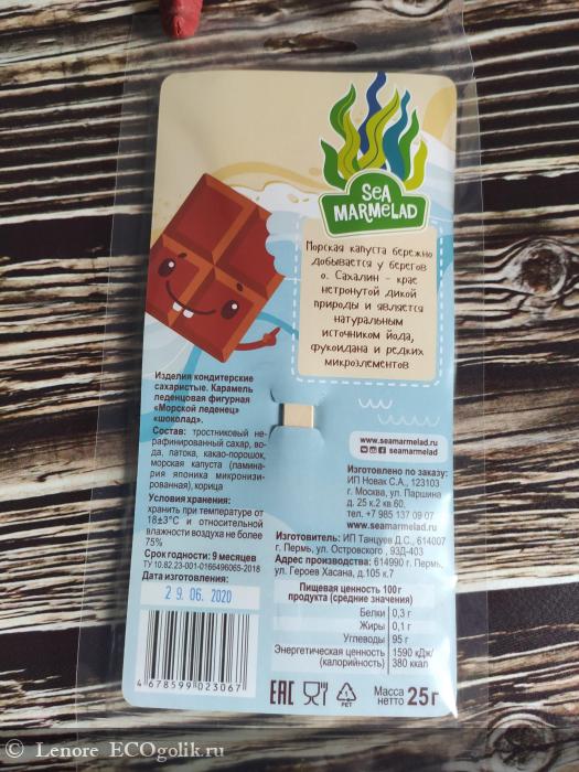 Состав: тростниковый нерафинированный сахар, вода, патока, какао-порошок, природная морская капуста - ламинария японская, корица