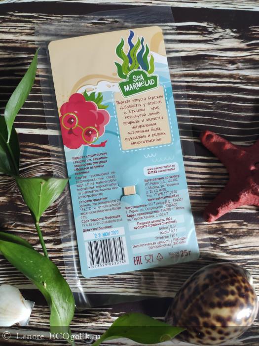 Состав: тростниковый нерафинированный сахар, вода, патока, малина сублимированная, природная морская капуста - ламинария японская, лимонная кислота, экстракт ванили.