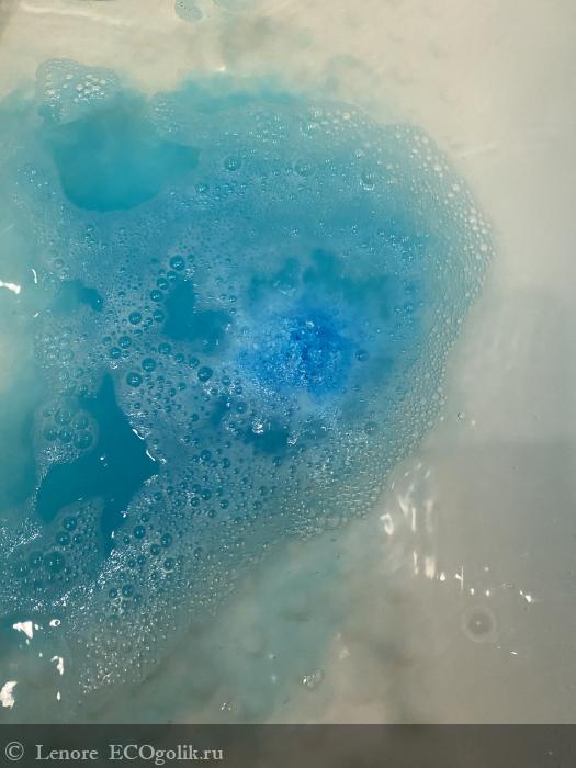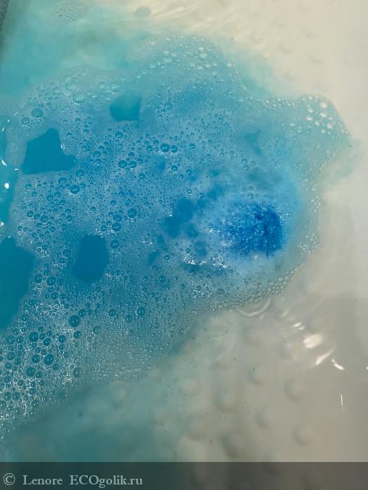 Воду окрашивает в яркий синий, очень красивый цвет, но ванну не пачкает.