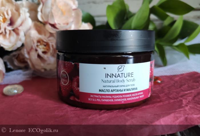Скраб для тела "Масло арганы и малина" INNATURE и теперь рука тянется только к нему, я понимаю, что как только открою баночку, сразу как-будто в лето попаду.