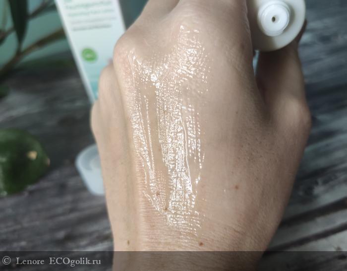 Распределяется по коже как гель или сыворотка, на мгновение кожа становится влажной от флюида и затем быстро все впитывается