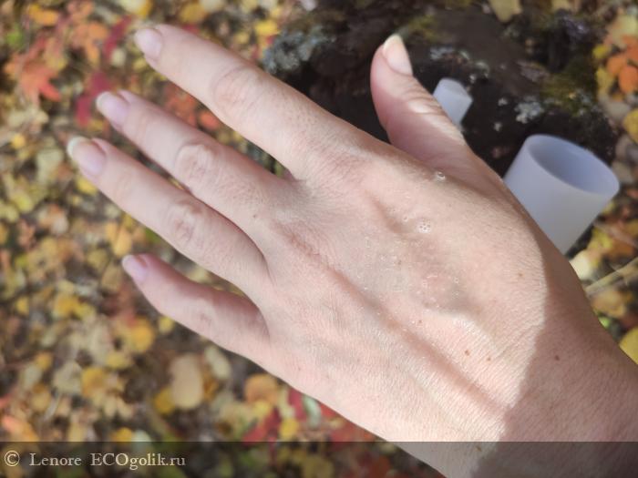 Попав на кожу мист мгновенно увлажняет её. На моей жирной коже (пока ещё не обезвоженной) такой продукт ощущается как лёгкая гиалуроновая сыворотка, видимо это за счёт алоэ и глицерина в составе. Иногда даже нет необходимости наносить что-то далее.