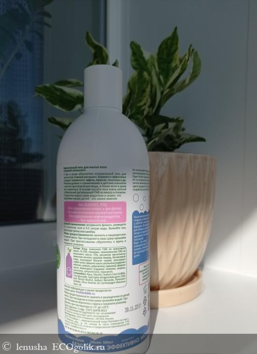 - Эффективно и бережно очищает - полы после мытья идеально чистые, без разводов. Очень приятно ходить по ним босыми ножками.