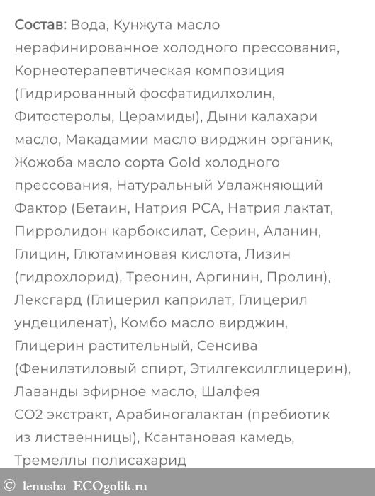 Для создания физиологичной эмульсии вместо обычных эмульгаторов используется корнеотерапевтическая композиция . Она разработана с учётом состава липидов кожи человека и содержит : гидрированный фосфадилхолин, фитостеролы, церамиды.