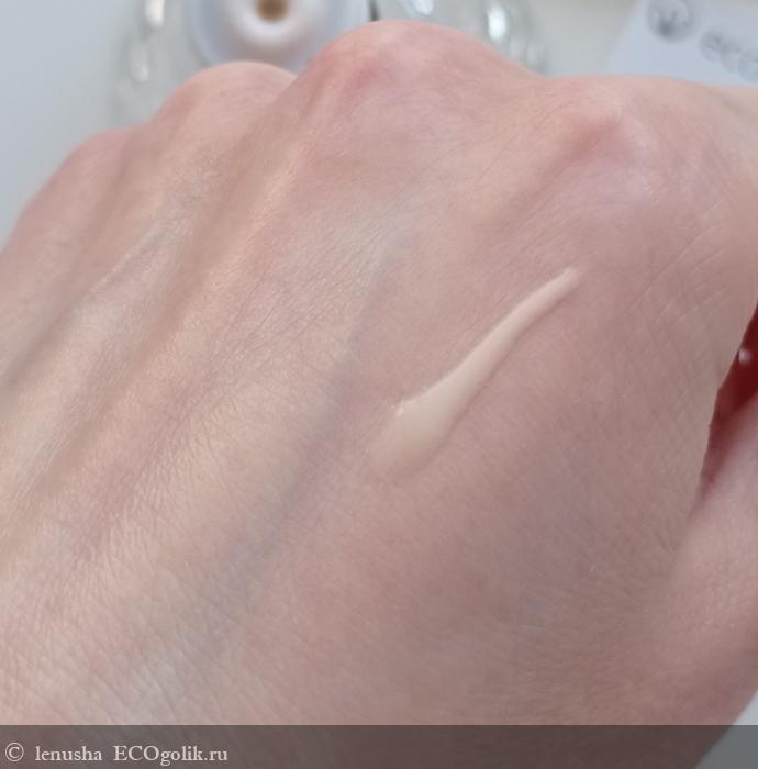Средство имеет жидкую, слегка тянущуюся консистенцию бежевого цвета. Она очень лёгкая и нежная, без труда распределяется по коже.