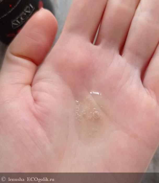 Гель прозрачный, слегка желтоватого оттенка. Обладает густой текстурой.