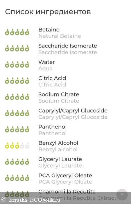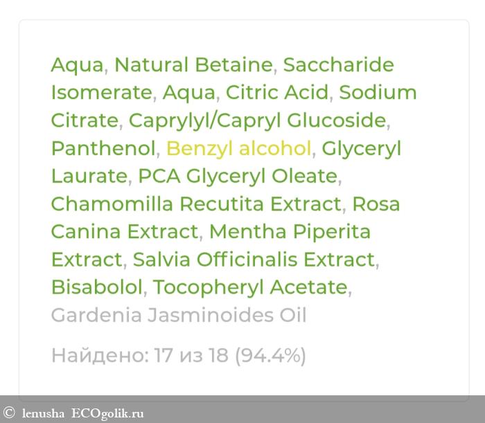 В составе мягкие ПАВ, увлажняющие, смягчающие и успокаивающие кожу активы - экстракты ромашки, шиповника, мяты и шалфея.