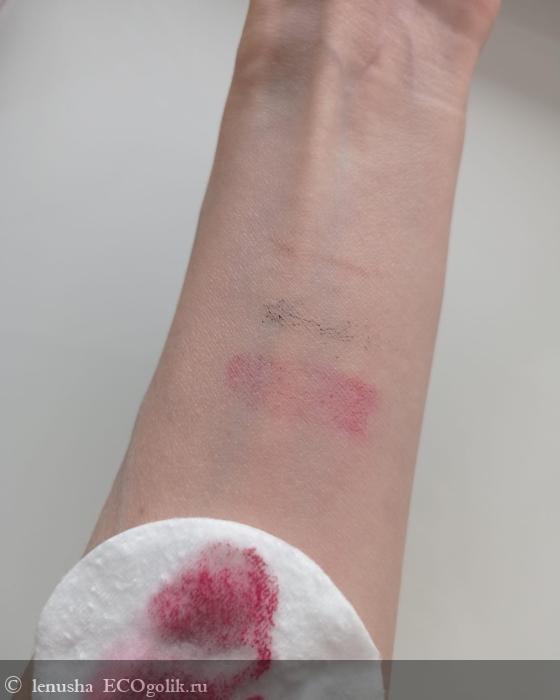 Для наглядности взяла стойкую, яркую помаду, которую без хорошего средства сложно удалить.