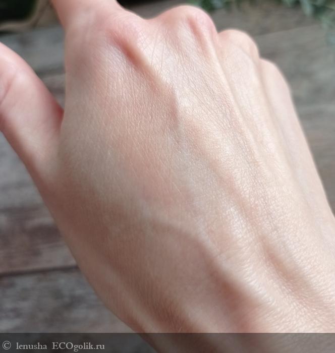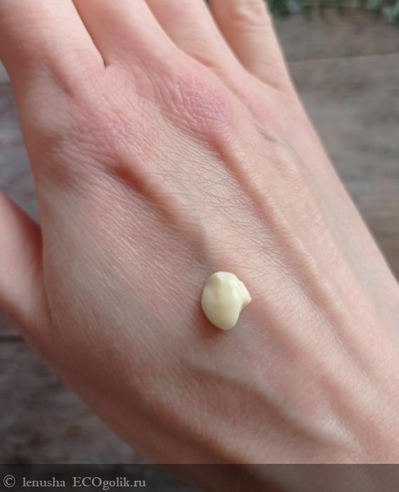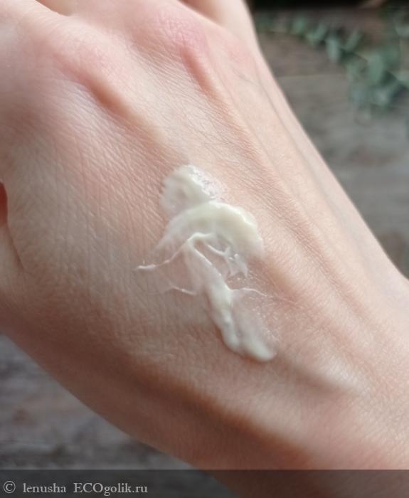 Консистенция - очень лёгкая, кремовая. Но при распределении по коже становится молочком , не полосит и быстро впитывается.