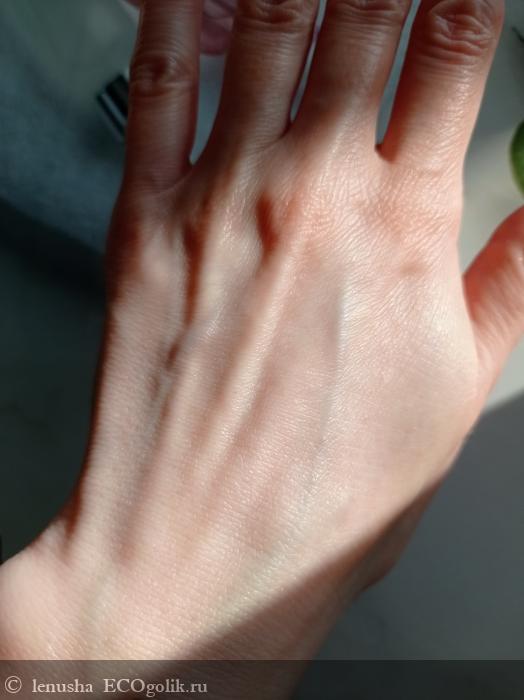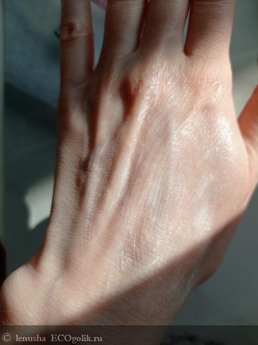 Крем легко распределяется по коже рук, может немного полосить, но впитывается без остатка буквально за минуту.