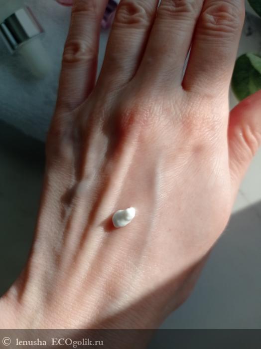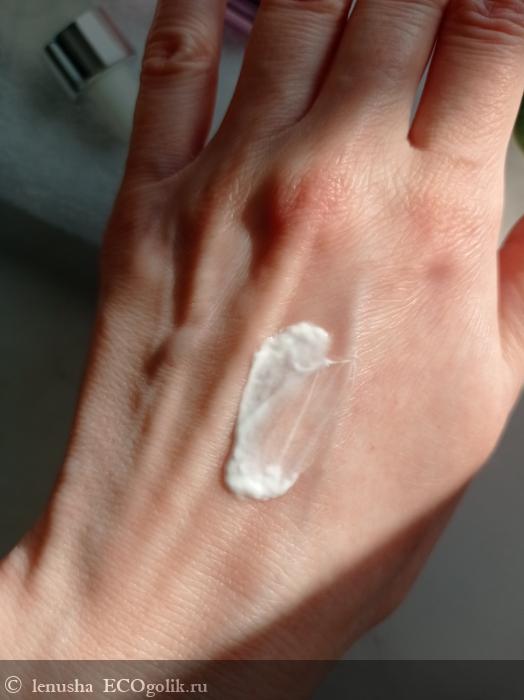Средство белого цвета, текстура нежная, густая, но не очень плотная и не жирная.